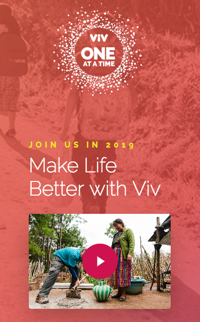 Today 1 in 9 people lack access to safe drinking water and millions of students walk miles a day to get an education. Viv is committed to helping you be part of solving these global challenges one service, one product, one trip, one water tank and one classroom at a time. Next year we will be bringing water and access to education to families and students in Guatemala and the Dominican Republic. Whether you are interested in learning more about how becoming a customer helps these projects happen or you’re interested in joining us on one of our upcoming One At A Time experiences, I’d love to catch up this afternoon and share more about our CEO’s vision to be a platform for good.